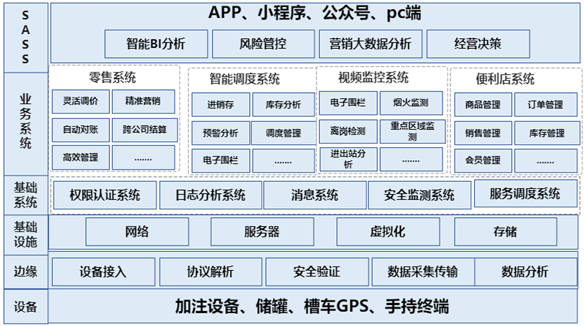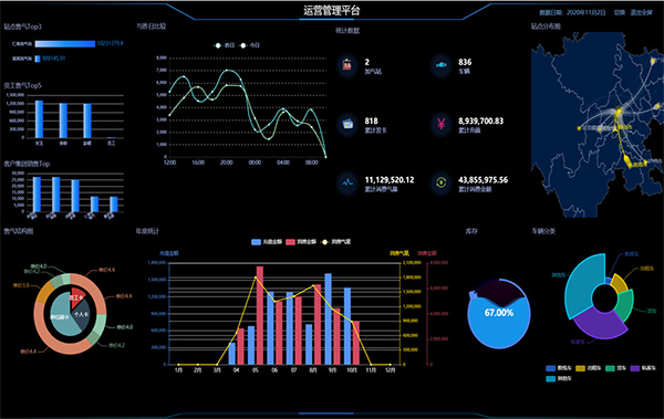 数智·能源运营管理云平台主要是给能源集团公司提供从气源(CNG母站/LNG工厂)到加注站所有业务数据信息化,对商品、设备、财务、员工、客户、销售、售后、营销、车辆调度、物流配送、远程视频监控等实现一体化管理。为能源公司的经营决策提供了有效的数据支撑。成熟的运营管理平台不仅仅用于LNG工厂、母站、CNG、LNG加气站,也广泛用于加氢站、加油站、充电站等站点的运营。
